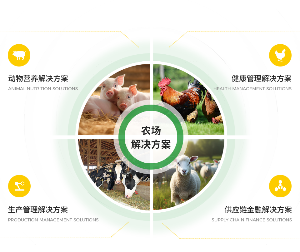 截止目前,集團(tuán)主要產(chǎn)品覆蓋豬、家禽、反芻動(dòng)物等,主要解決方案覆蓋動(dòng)物營(yíng)養(yǎng)、生產(chǎn)管理、健康管理、供應(yīng)鏈金融方案等內(nèi)容,致力于成為農(nóng)場(chǎng)整體解決方案引領(lǐng)者,提升農(nóng)場(chǎng)生產(chǎn)安全和效能。